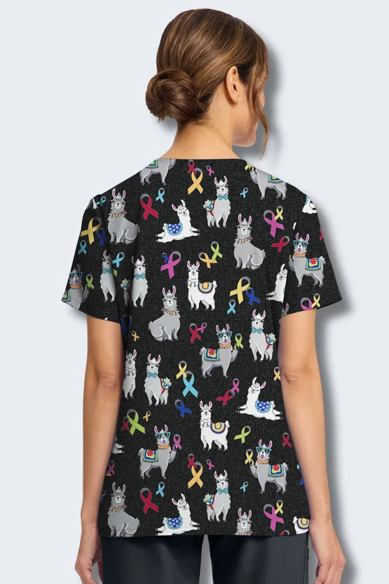 CK856 Llama Be Aware – V-Neck Print Scrub Top