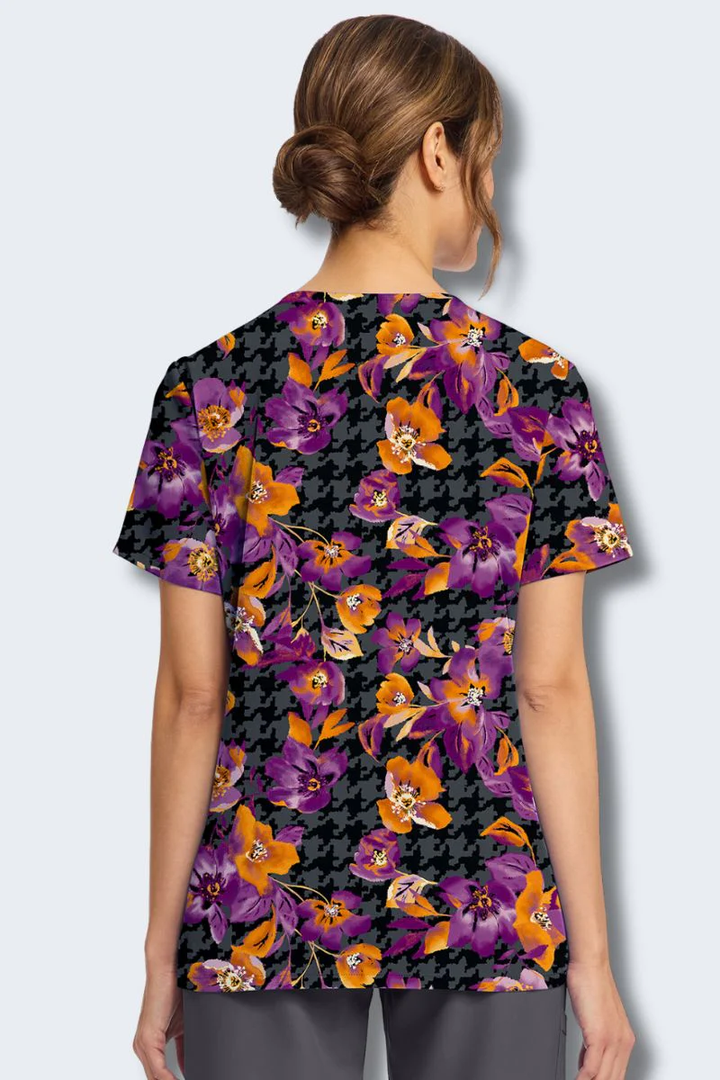 CK856 Velvet Floral – V-Neck Print Scrub Top
