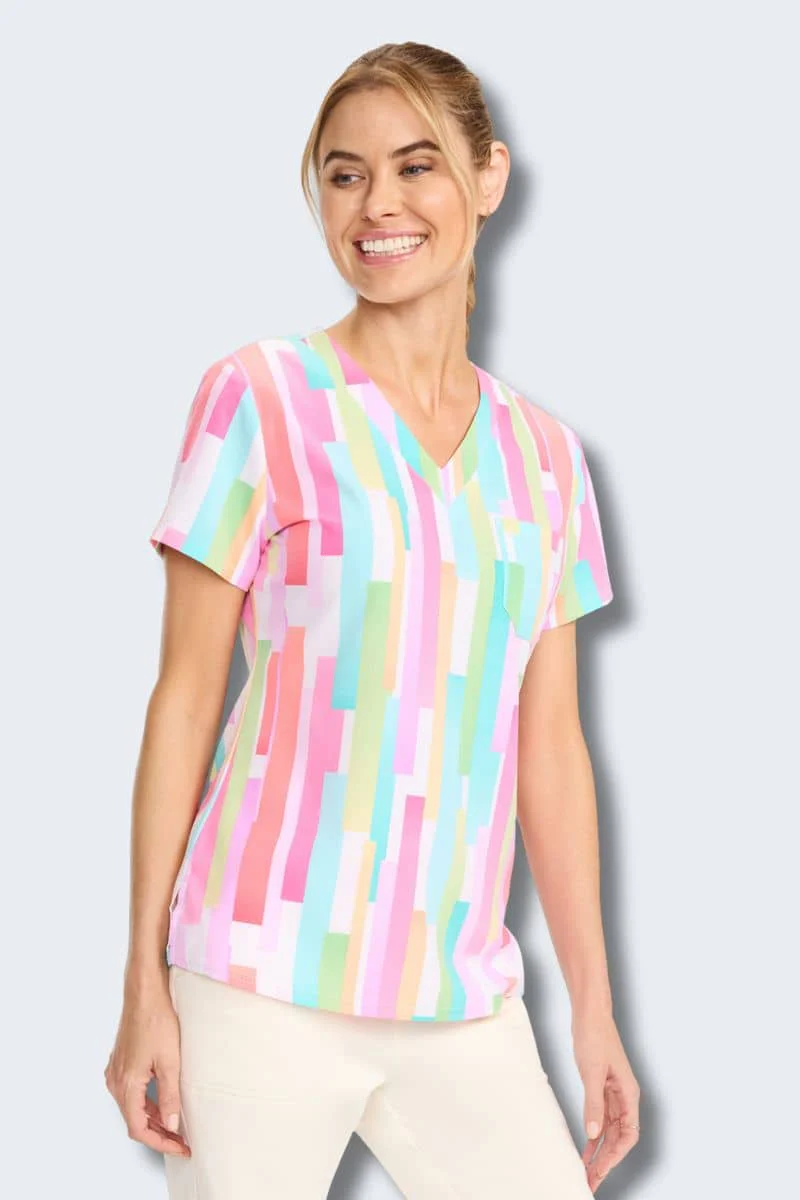 MC632 Med Couture Pop Stripes V-Neck Printed Scrub Top